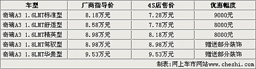 奇瑞A3自動擋暫時無車 手動擋優(yōu)惠近萬元