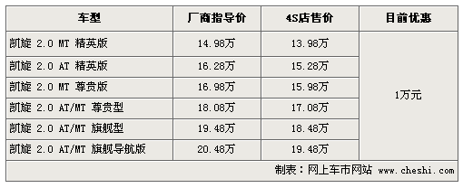 據(jù)4S店銷售人員介紹:目前凱旋可優(yōu)惠1萬(wàn)元,并送2000元裝飾。凱旋現(xiàn)車較少,基本需要預(yù)訂。如果選擇銀色、黑色凱旋可在一周內(nèi)提車,但選擇紅色、白色銷量較少的顏色需等待一個(gè)月時(shí)間。