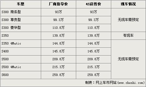 據(jù)北京奔馳4S店銷售人員介紹,剛剛上市的奔馳新S級S350L車型店內(nèi)有現(xiàn)車,欲購買的消費(fèi)者可以直接從店內(nèi)提現(xiàn)車。而其他的大部分新S級車型店內(nèi)無現(xiàn)車,欲購買的消費(fèi)者需交10萬訂金約等1個月后可提車。