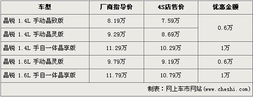 據(jù)記者走訪北京多家斯柯達經(jīng)銷店獲知,近期購買斯柯達晶銳的消費者可以得到最高1萬元的優(yōu)惠。斯柯達晶銳的手動擋車型相對優(yōu)惠幅度小一點,但也達到了6000元。經(jīng)優(yōu)惠后,入門級的斯柯達晶銳1.4L手動晶致版售價從8.19萬元下降到了7.59萬元。手自一體的車型優(yōu)惠金額達到了1萬元,全系最高配的1.6L手自一體晶享版售價從11.79萬元降到了10.79萬元。