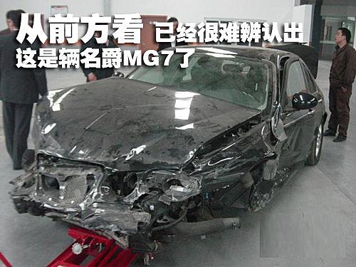 當(dāng)我們看見這輛被拖回來的名爵MG7時,因為車輛受損比較嚴重,如果不看車尾從車頭方向看上去,已經(jīng)很難辨認出這到底是一輛什么車了。