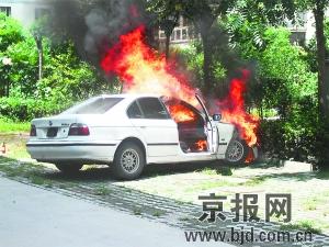 昨天中午12時(shí)許,烈日炎炎下,通州區(qū)西露園小區(qū)里的一輛寶馬轎車突然躥出了火苗,經(jīng)過(guò)通州區(qū)新華街消防中隊(duì)10分鐘的撲救,大火終于被撲滅。
