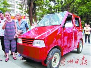 “做這玩意兒主要出于愛(ài)好!绷糁鴾\平頭的湖北黃石人彭易然坦然而得意地告訴記者,7年來(lái)一直在東莞長(zhǎng)安霄邊從事送水、送氣的他,很想擁有一輛自己的轎車(chē),但是高昂的車(chē)價(jià)使得他望洋興嘆。于是在去年9月,僅有小學(xué)學(xué)歷的他突發(fā)奇想“自己做一輛”。