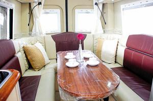 在寬敞的房車里,可以煮飯、打牌、睡覺等。