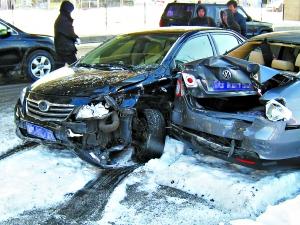 在距離事發(fā)地點不到5米的一家汽車銷售店上班的閻先生稱,事發(fā)時外面很安靜,他和店里的同事接連聽見兩下撞擊聲,出門就看到慘劇發(fā)生。豐田車的左前側受損嚴重,前輪搖搖欲墜。而速騰車和廣本車的車尾部被撞嚴重,完全癟了進去,其中速騰車后備箱里的備胎還被撞了出來!罢厥仑S田車里有4人,司機下車后還是鎮(zhèn)定地安撫乘客。”閻先生說,被撞的男子趴在雪地里,頭上滿是鮮血。隨后999趕到,據(jù)急救人員稱,剛開始男子還有呼吸,但2分鐘之后,男子死亡。