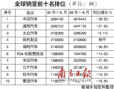 處于危機(jī)中的市場(chǎng),誰(shuí)能最低限度地保持自己的跌幅,誰(shuí)就贏得了市場(chǎng)。近日,美國(guó)汽車新聞(AutomotiveNews)公布了2009年上半年各家汽車廠商在全球的銷量資料,現(xiàn)代汽車表現(xiàn)出足夠的抗跌性,已經(jīng)超越福特汽車,爬升至全球老四的位置。而經(jīng)過(guò)鳳凰涅槃的通用汽車,上半年的銷量則縮小與豐田的差距,有可能重新奪回世界銷量第一的寶座。目前,在世界排名前10的廠商中,亞洲車企獨(dú)占一半,歐洲車企有3家,美國(guó)則只剩下了2家。經(jīng)歷了一場(chǎng)浩劫般的危機(jī)后,世界汽車市場(chǎng)的格局有望重新排列。