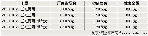 據(jù)天津一汽夏利4S店銷售人員介紹,全新夏利N5有望在下個(gè)月上市,預(yù)計(jì)售價(jià)4.88-5.38萬元,目前沒有展車到店,所以仍然不接受這款新車的預(yù)訂。目前老款夏利N3現(xiàn)車比較齊全,而且全系車型都可以優(yōu)惠6000元,價(jià)格全線跌入三萬元區(qū)間。