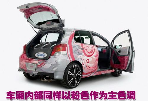 豐田雅力士的目標(biāo)消費(fèi)人群主要為女性消費(fèi)者,因此豐田此次與零部件合作部門以及售后合作商推出的這款改裝雅力士車型采用了粉色的車身噴涂,其車廂內(nèi)部也是以粉色作為主色調(diào)。