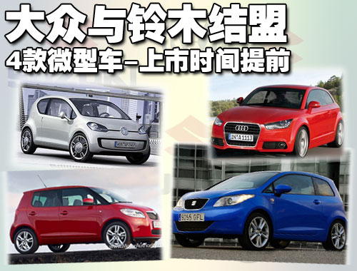 奧迪A2將在2011年正式上市,其中包括擴(kuò)3門和5門版、跑車版、敞篷版,大眾品牌將在2012年推出全新一代微型車UP。為了能在未來的價(jià)格競(jìng)爭(zhēng)中獲得優(yōu)勢(shì),大眾將為UP系列微型車開發(fā)包括全新設(shè)計(jì)的小排量發(fā)動(dòng)機(jī)(1.0升及以下)、全新開發(fā)的手動(dòng)/自動(dòng)變速器在內(nèi)的一系列配套零部件。作為UP計(jì)劃的一個(gè)重要組成部分,大眾需要在短時(shí)間內(nèi)開發(fā)出1.0升/0.8升甚至0.6升多款全新發(fā)動(dòng)機(jī),而大眾在1.0升以下排量發(fā)動(dòng)機(jī)方面的技術(shù)儲(chǔ)備幾乎為零。與鈴木的聯(lián)盟將完全解決這些問題,微型車上市時(shí)間將提前。