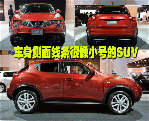 2008年3月東風(fēng)日產(chǎn)正式推出了首款交叉車型逍客(Qashqai)。逍客又可以稱的上是中國(guó)汽車市場(chǎng)上的第一款真正意義上的跨界車。逍客不僅擁有SUV的時(shí)尚外觀和越野性,又兼顧了轎車的舒適性和省油優(yōu)勢(shì),憑借這些優(yōu)勢(shì)逍客也贏得了大消費(fèi)者的青睞。同時(shí)日產(chǎn)汽車看準(zhǔn)了這個(gè)市場(chǎng),將大量的人力物力投入到新款交叉車型的研發(fā)上。近日日產(chǎn)就在英國(guó)當(dāng)?shù)匕l(fā)布全新一款入門級(jí)跨界車型-JUKE,英國(guó)當(dāng)?shù)厥蹆r(jià)區(qū)12,795英鎊至19,995英鎊之間,約合人民幣12.7萬(wàn)——19.8萬(wàn)元。單從售價(jià)上看JUKE還是相當(dāng)具有市場(chǎng)競(jìng)爭(zhēng)力的,下面就讓我們一同領(lǐng)略一下JUKE的風(fēng)采。