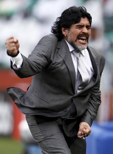 馬拉多納回來了,以一個(gè)新身份——球王主教練,帶領(lǐng)梅西等一班天才,想要體驗(yàn)真正黃袍加身的快感。北京時(shí)間6月12日晚,阿根廷小勝非洲雄鷹,馬拉多納用快感在鉆石王國肆虐了一把,熊抱木訥梅西,親了又親。