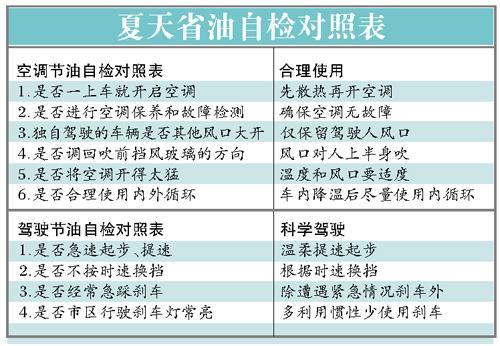 記者走訪4S店發(fā)現,隨著天氣的炎熱,越來越多的經濟車主因為居高不下的油耗,懷疑汽車質量問題。記者調查發(fā)現,排除產品故障外,影響夏天汽車油耗最主要的因素就是空調的使用不當。此外,因天氣造成心情浮躁導致的急加油和急剎車等,也白白導致了汽油的浪費。售后人員指出,在科學使用空調的情況下,百公里油耗增加1~2L,屬于正常的范疇。下面,我們將跟隨節(jié)油高手的步履,走進夏日節(jié)油的世界。