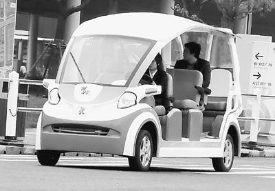上海世博園內(nèi)運行著太陽能、新能源汽車、LED照明工程等低碳應(yīng)用項目。圖為燃料電池觀光車正在世博園區(qū)載客運行。