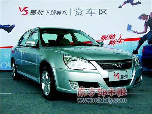 8月28日,東南汽車首款自主研發(fā)新車V3菱悅在福州正式下線,標(biāo)志著東南自主品牌戰(zhàn)略進(jìn)入實(shí)施階段。記者獲悉,V3菱悅將于10月初全面上市。業(yè)界普遍預(yù)期其售價(jià)區(qū)間為6萬-9萬元。競爭對手為比亞迪F3、奇瑞新旗云等。