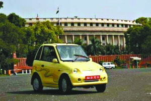 “雷瓦”電動(dòng)車由電池驅(qū)動(dòng),可在家里或辦公室充電。無排放,有益環(huán)保。它由重量較輕的鋼材和塑料制造,車身零件也比普通汽車少。(王穎)