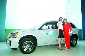 上周,通用汽車零油耗、零污染的氫燃料電池車雪佛蘭Equinox在北京奧運(yùn)會“水立方”場館西側(cè)的盤古大觀亮相。