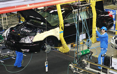 11月25日,工人正在上海通用的流水線上裝配轎車。 裴鑫 攝