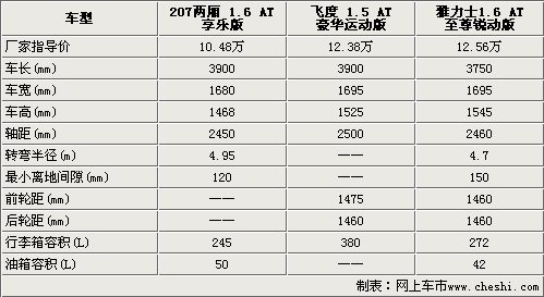 通過(guò)上述對(duì)比之后,相信各位朋友對(duì)標(biāo)致207兩廂有了一個(gè)大致的解了。標(biāo)致207兩廂、新飛度和雅力士都可以算是法系和日系兩廂A0級(jí)轎車的代表。標(biāo)致207動(dòng)力強(qiáng)勁,新飛度配置豐富,并且車內(nèi)空間較為寬敞。雅力士則在車輛安全細(xì)節(jié)上比較到位。三款小車可以說(shuō)是各有各的特點(diǎn),而最終的選擇還要看消費(fèi)者的實(shí)際需要。