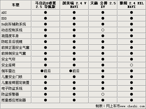 通過(guò)上述描述,相信您對(duì)這四款車型有了一個(gè)大致的了解。馬自達(dá)6睿翼外觀設(shè)計(jì)較為時(shí)尚,安全性能突出,具有較高的性價(jià)比。新雅閣擁有大氣的外觀,全面的配置絕對(duì)能夠滿足大多數(shù)公務(wù)用途。凱美瑞在市場(chǎng)上有著絕對(duì)的號(hào)召力和保有量,消費(fèi)者對(duì)它的反應(yīng)更是有口皆碑的,是一款不折不扣的全能車型。而天籟•公爵則擁有出色的動(dòng)力性能。四款車可以說(shuō)是各有各的特點(diǎn)和優(yōu)勢(shì),至于最終的選擇還要看消費(fèi)者的實(shí)際需求了。 (李曉磊)