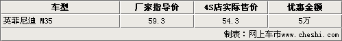 據(jù)英菲尼迪4S店銷售人員介紹,目前店內(nèi)現(xiàn)款M35車型的現(xiàn)車相對較全,若消費者對于車輛的顏色及版本沒有特殊要求,可在展廳內(nèi)近距離接觸展車后直接付款購買現(xiàn)車。銷售人員表示,近期在店內(nèi)購買EX35車型的消費者均可享受5萬元的現(xiàn)金優(yōu)惠。