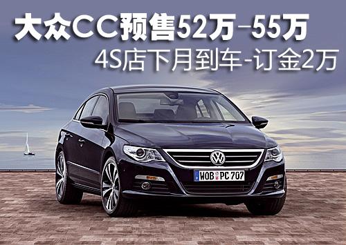 據4S店銷售人員介紹,目前大眾CC已經可以接受消費者預訂,訂金為2萬元。4月份4S店首批車型將到店,預計這款車的售價在52萬-55萬區(qū)間,但具體官方價格尚未公布。配置方面,這款車分為豪華版和頂級版,氙氣大燈、電動折疊加熱外后視鏡、定速巡航及電子駐車制動器等均是兩款車型的標準配置。但由于價位以及市場定位的不同,大眾CC轎跑頂級版配備了更加高級的無鑰匙啟動及鎖定系統(tǒng)好和30GB內置硬盤及觸摸屏語音控制。