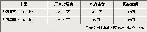 據(jù)經(jīng)銷商銷售人員介紹,大切諾基3.7L車型的優(yōu)惠金額為1.69萬元,而高排量的5.7L車型優(yōu)惠金額為7.69萬元,達到了全系的最高。在售的Jeep-大切諾基共分為3.7L四驅(qū)和5.7L四驅(qū)兩個車型。3.7L四驅(qū)型的優(yōu)惠金額經(jīng)1.69萬元的優(yōu)惠后,售價降為了40.5萬元。而排量稍大的5.7L四驅(qū)型的優(yōu)惠金額為7.69萬元,降價后的售價為52萬元。