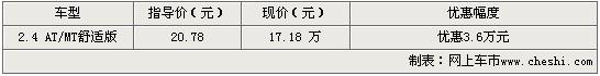 外觀上,08款別克君越改進(jìn)了尾燈造型,由原來(lái)的透明式鏡面電鍍鎢光燈罩改為亦動(dòng)亦靜的“展翼式”紅色燈組新設(shè)計(jì),布局設(shè)計(jì)突顯“動(dòng)靜合一”的產(chǎn)品理念,突出大氣尊貴與精致優(yōu)雅,既有堅(jiān)盾之“靜”,體現(xiàn)了別克家族血緣,呼應(yīng)了車(chē)尾線條,又“動(dòng)”如展翅,兼顧精致豪邁,流光溢彩紛呈。近日根據(jù)網(wǎng)上車(chē)市價(jià)格監(jiān)測(cè)系統(tǒng)顯示,目前上海地區(qū)購(gòu)買(mǎi)別克君越全系車(chē)型可以得到3.6萬(wàn)元的價(jià)格優(yōu)惠。具體車(chē)型報(bào)價(jià)如下表: