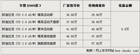 對(duì)比起08款款的4.5萬元的優(yōu)惠,09款凱迪拉克的現(xiàn)金讓利是極為“吝嗇”,上個(gè)月網(wǎng)上市價(jià)格監(jiān)測(cè)系統(tǒng)顯示新款凱迪拉克是分文不讓,近日,筆者走訪廣州地區(qū)經(jīng)銷商處了解到,09款凱迪拉克有9千元的降價(jià),優(yōu)惠逼迫近萬大關(guān)。全系現(xiàn)車充足,主打紅色車和黑色車系。具體價(jià)格如下: