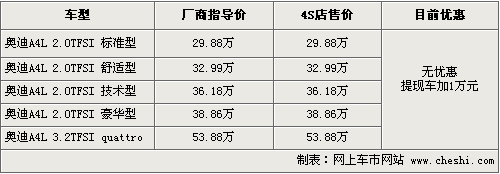 筆者從北京地區(qū)經(jīng)銷商處了解到,目前奧迪A4L現(xiàn)車供應(yīng)比較緊張,現(xiàn)車數(shù)量非常少,款式主要集中在2.0T舒適版和3.2兩款車,各4S店供車情況有一定差異。部分店提現(xiàn)車仍然需要加1萬元現(xiàn)金,或者在店內(nèi)做1萬元裝飾。消費者如果訂車的話,需要交5000元左右訂金,等待一個月時間提車。