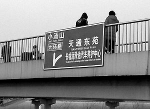據(jù)了解,關(guān)于“山寨指路牌”的帖子最早出現(xiàn)在天通苑生活社區(qū)網(wǎng)的論壇里,題目為“金睛火眼辨真?zhèn)危捍蠹襾硗镀薄保l(fā)帖者“飛揚(yáng)”稱,讓網(wǎng)友看看“這塊安裝在城鐵立水橋站天橋上的牌子是真是假”,并貼出圖片。
