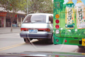 按照交通規(guī)則,馬路上的雙黃實線,車輛行駛既不能壓線,更不能跨越。在天河岑村附近的這條長興路,雙向四車道卻頻頻有車輛視中央的雙黃實線為無物。圖中左邊這輛廣州車牌的MPV,僅僅因為嫌前方的公交車行駛太慢,于是心急地從左方壓著雙黃實線超越前方的公交車。記者在現(xiàn)場看見,這輛車在超越中途,半個車身甚至越到了對面車道,影響相向車輛的行駛,相當危險。(鄧莉)