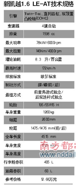 新凱越沿用了舊款車型的動力系統(tǒng),不過經(jīng)過重新調(diào)校之后,其1.8升和1.6升DOHC16VTwin-Tec引擎都達(dá)到了歐IV排放標(biāo)準(zhǔn)。我們此次試駕的車型配備了1.6升發(fā)動機(jī),在6000轉(zhuǎn)時可達(dá)到78kW的最大功率;在3600轉(zhuǎn)時,提供146Nm的最大扭矩,在同級車型當(dāng)中表現(xiàn)居中。傳動系統(tǒng)上,與這款1.6升四缸引擎相匹配的是一臺鋸齒形排列的4速自動變速箱。從廠家提供的資料上看,為了獲得更好的經(jīng)濟(jì)性能,這款變速器配備有“智能切換空擋”功能。