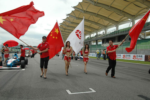 2008年5月11日15時30分,馬來西亞雪邦國際賽車場內(nèi)人聲鼎沸,各位車手陸續(xù)飛速掠過終點(diǎn)線,AGF亞洲方程式國際公開賽結(jié)束本站比賽,成為首項(xiàng)跨國舉辦的中國汽車場地賽,夢龍車隊(duì)車手羅兆峰奪得第一回合冠軍,中國郵政速遞EMS車隊(duì)車手張志強(qiáng)則摘走第二回合桂冠。