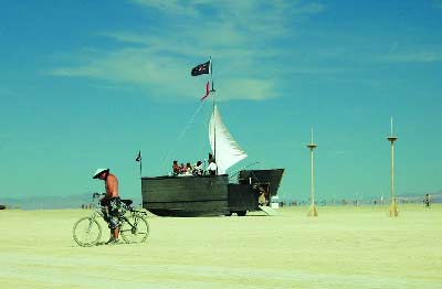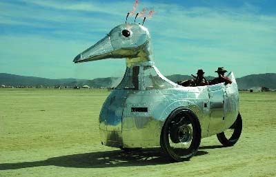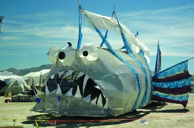 說到美國,迄今為止恐怕沒有什么比汽車更能代表這個國度了。所以,在今年的節(jié)日上,我們也有幸看到了各式各樣的怪異汽車:木制的悍馬被涂得五顏六色、窮兇極惡的大鯊魚齜牙咧嘴、美國式的泰坦尼克號……一句話,在追求異想天開與荒誕的BurningMan節(jié)日,沒有什么不可能?纯催@些圖片,您是否也能做一輛?