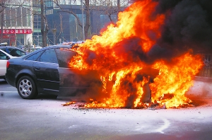 昨天上午9時(shí)許,一輛奧迪車行駛至車公莊西路中國(guó)船舶大廈樓前時(shí)突然起火,過(guò)往司機(jī)紛紛從車內(nèi)拿出滅火器進(jìn)行撲救,但無(wú)濟(jì)于事。