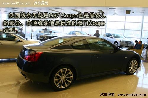 側(cè)面線條無疑是G37 Coupe與Saden車型區(qū)別最大,也是最誘人的部分。車頂流線造是標準的雙門Coupe造型,腰線直接延成為行李箱蓋并于面積巨大的尾燈連成一體。短小的后和行李箱形成刀切般的簡潔線條。