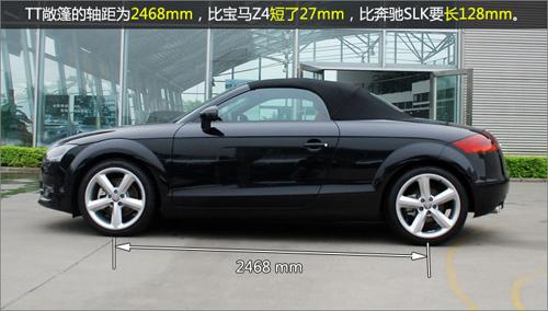 奧迪TT敞篷的軸距為2468mm,與另外兩個(gè)來(lái)自德國(guó)的競(jìng)爭(zhēng)對(duì)手相比,奧迪TT的軸距比寶馬Z4短了27mm,比奔馳SLK要長(zhǎng)128mm。