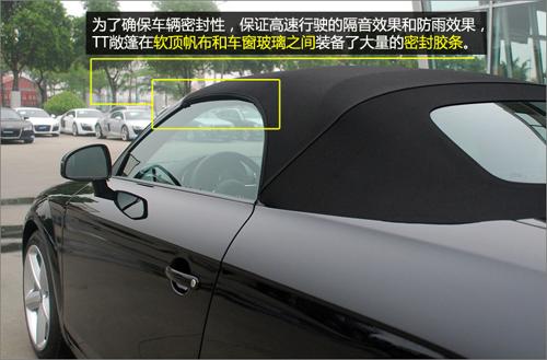TT 敞篷采用的是軟頂,而并未隨大趨勢使用電折硬頂,軟篷的收折及儲存均比硬頂富彈性,優(yōu)點是無須占用車尾大量空間,篷身可選擇不同顏色,配搭出更多變化的視覺效果。而且,奧迪TT 敞篷采用的多層布制軟篷有優(yōu)秀的隔音效果,不必?fù)?dān)心高速行駛時會有巨大的風(fēng)噪。