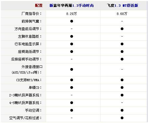 對(duì)應(yīng)飛度1.3MT手動(dòng)型的是新嘉年華1.3MT時(shí)尚型,兩者價(jià)格相差3900元,新嘉年華以一項(xiàng)主要的被動(dòng)安全配置出——即前排側(cè)氣囊。此外,還多出了外接音頻接口和兩個(gè)揚(yáng)聲器,少了方向盤(pán)前后調(diào)節(jié)、后排座椅角度可調(diào)以及花粉過(guò)濾。