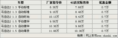 據(jù)長安馬自達(dá)銷售人員表示,購買馬自達(dá)2車型除了可以得到7000元現(xiàn)金優(yōu)惠外,還可以得到廠家贈(zèng)送價(jià)值千元的原廠汽車裝飾。目前馬自達(dá)2兩廂車型的貨源比較緊張,部分車型需要提前預(yù)訂,訂貨周期一般在7-15個(gè)工作日左右。由于小排量車型的購置稅下調(diào),整體購車價(jià)將會(huì)下調(diào)3-4千元左右,在加上目前的現(xiàn)金優(yōu)惠,消費(fèi)者目前購車還是比較劃算的。