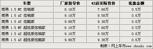據(jù)長安鈴木4S店銷售人員介紹,雨燕目前現(xiàn)車比較充足, 1.5L雨燕車型在北京最高可給出6000元的優(yōu)惠,相比前一陣優(yōu)惠金額增加500元。另外,倍受關注的雙色版雨燕目前的價格仍然沒有變化,并且均為訂單銷售,各店沒有現(xiàn)車。若想購買需要提前預訂,訂金2000元,四周后提車。