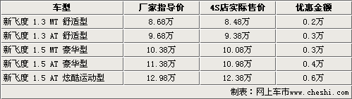 據(jù)廣州本田北京地區(qū)4S店銷售人員介紹,新飛度全系的優(yōu)惠金額與前一陣相比基本沒變,不過新飛度 1.5L炫酷運動版的優(yōu)惠金額上漲到了6000元。新飛度在售車型分為1.3L及1.5L共5個車型在售,1.3L手動舒適版的優(yōu)惠金額仍為2000元,現(xiàn)售價為8.48萬元。1.3L自動舒適版的優(yōu)惠金額為3000元,現(xiàn)售價為9.38萬元。1.5L豪華版的手動和自動車型經(jīng)4000元優(yōu)惠后,現(xiàn)售價分別為10.08萬元和10.98萬元,1.5L炫酷運動版的優(yōu)惠從5000元上漲到了6000元,現(xiàn)售價為12.38萬元。