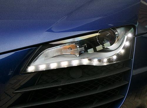 在圓潤飽滿的車頭造型下,設(shè)計師將其切分為三個區(qū)塊;中央為盾形水箱護(hù)罩,兩側(cè)則整合頭燈與進(jìn)氣口設(shè)計。銳利有神的頭燈組采用HID氣體放電式頭燈,而12支LED構(gòu)成的日間行車燈也成為了而后奧迪家族的招牌特征;此外車主也能選用全LED頭燈,以54支LED提供接近日照的夜間照明效果。