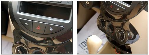 低配車型僅配備了一臺FM收音機,雖然沒有CD音響,但是附帶的AUX功能還是使實用性大大增強,安全帶提示功能為全車系標(biāo)配,手動空調(diào)旋扭處造型不錯,不過做工和手感卻很一般。
