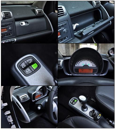 說實話,在車內我還真沒找到什么特別實用的設計,想必最大的原因是受到了空間的限制。要說不大的亮點,音響系統(tǒng)算是其中一個,smart為其標配了CD+AUX外接音頻功能組合,在實際使用中,該套音響的播放能力還是不錯的,由其在低音的表現(xiàn)上,如果不是要求太苛刻的話,我想連改裝的必要都沒有了。
