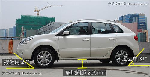 雖說雷諾Koleos不以SUV自居而是強(qiáng)調(diào)Crossover的跨界車型,但是起外形設(shè)計(jì)則處處體現(xiàn)SUV的特質(zhì),206mm的最小離地間距保證了其有足夠的通過性能,而27°的接近角和31°的遠(yuǎn)去角都完全是按照SUV的級(jí)別來設(shè)計(jì)的,應(yīng)對(duì)各種顛簸路面或是崎嶇山路都能從容通過。