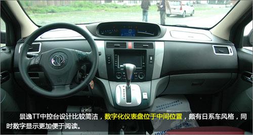 景逸TT的儀表盤位于中控的正中央,紅色的背光特別醒目,發(fā)動(dòng)機(jī)轉(zhuǎn)速、車輛時(shí)速、油料情況、音響、空調(diào)控制等信息都能得到充分的顯示。中控臺(tái)上采用人機(jī)工程學(xué)原理設(shè)計(jì)的各種按鍵,簡單易用,處處體現(xiàn)了人性化關(guān)懷的設(shè)計(jì)元素。而且,“景逸TT”換擋桿也移至了中控臺(tái)上,不僅使用順手便利,更為駕駛員右側(cè)騰出了更大的活動(dòng)空間。