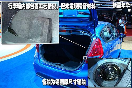 福特嘉年華的行李箱內(nèi)部全部用符合材料進(jìn)行了包裹處理,這層材料比較厚實(shí)和柔軟能夠?qū)φ嚨母粢粜云鸬揭欢◣椭,備胎部分為鋼輪圈的全尺寸輪胎?/p>