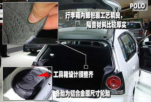 上海大眾polo是唯一標(biāo)配鋁合金輪轂全尺寸備胎的車型,行李箱內(nèi)部的包裹材料相比新建年華而言更加厚實(shí)和柔軟。位于備胎內(nèi)部分工具箱設(shè)計(jì)的很有特色,完全沒(méi)有凌亂的感覺(jué)非常的整齊。