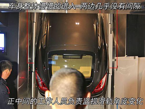 再快將車身完全吊起之前,一直都由一名工作人員監(jiān)視著滑軌和運(yùn)輸架的動(dòng)作,并監(jiān)控著車身與電梯兩側(cè)的距離。看著車身慢慢的完全進(jìn)入電梯內(nèi),想必工作人員的心都在逐漸放松吧。